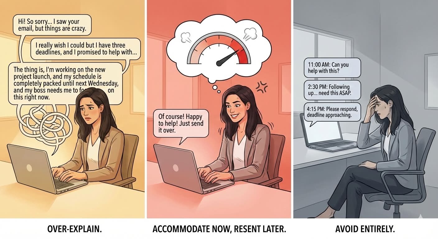 You say yes in the moment, then spend the next three hours (or three days) mentally rehearsing what you should have said while your workload compounds.