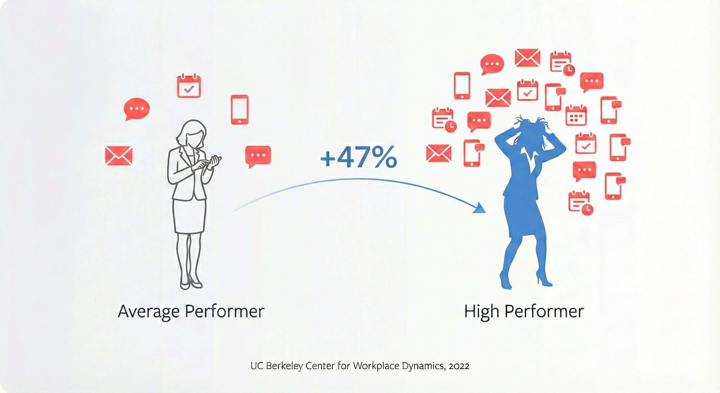 A 2022 study from the University of California's Center for Workplace Dynamics tracked 3,200 knowledge workers across 47 companies and found that high performers get interrupted 47% more often than their peers.