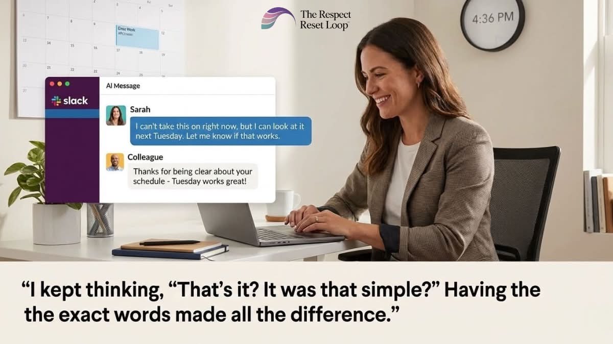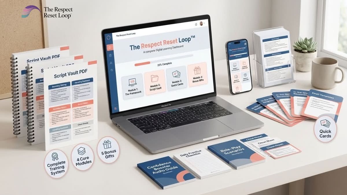 The Respect Reset Loop™ gives you the specific language that maintains your professional reputation while protecting your boundaries—scripts that have been tested in real workplace scenarios by women just like you.