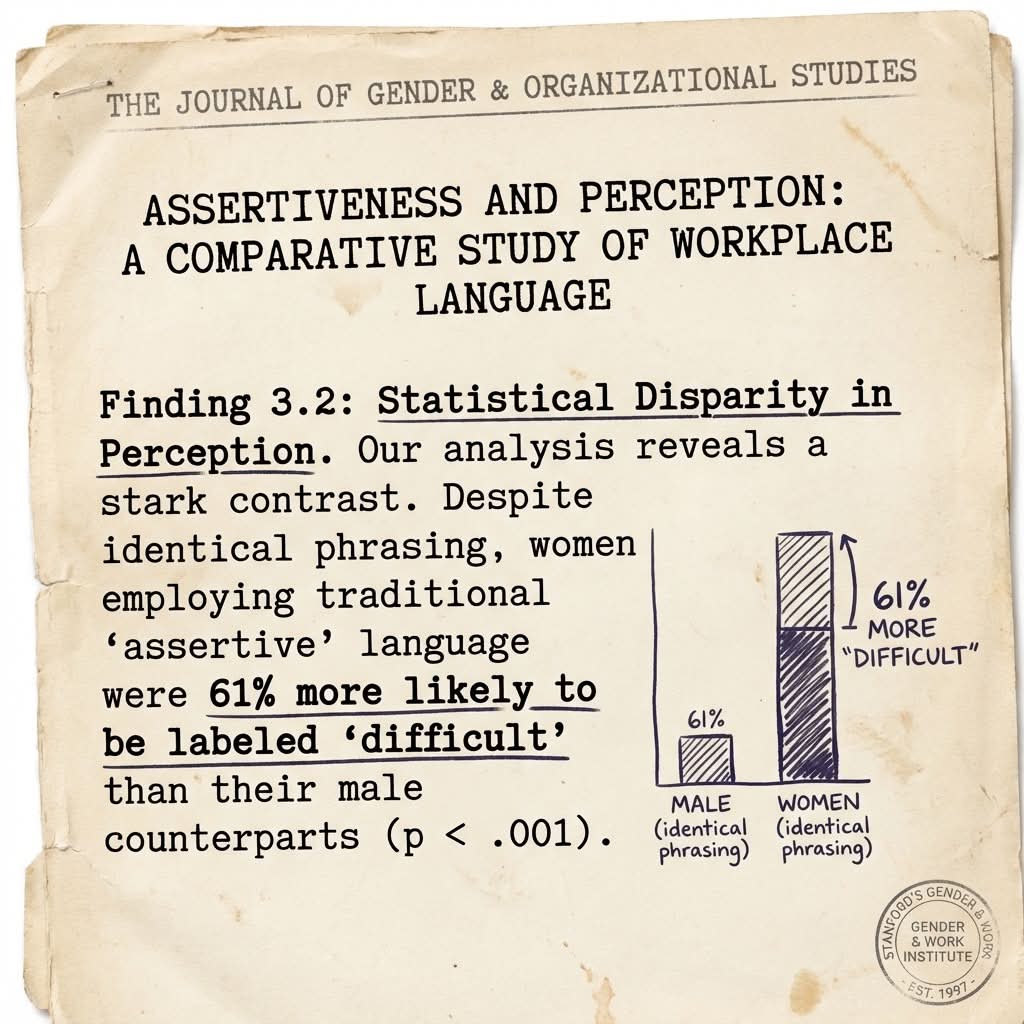 Dr. Lisa Chen's research at Stanford's Gender and Work Institute tracked 1,847 performance reviews across 28 companies and found something striking: Women received feedback using the word "collaborative" 3.2 times more often than men. But women who set clear boundaries were 61% more likely to be described as "difficult to work with" in subsequent reviews—even when their male colleagues exhibited identical boundary-setting behavior.
